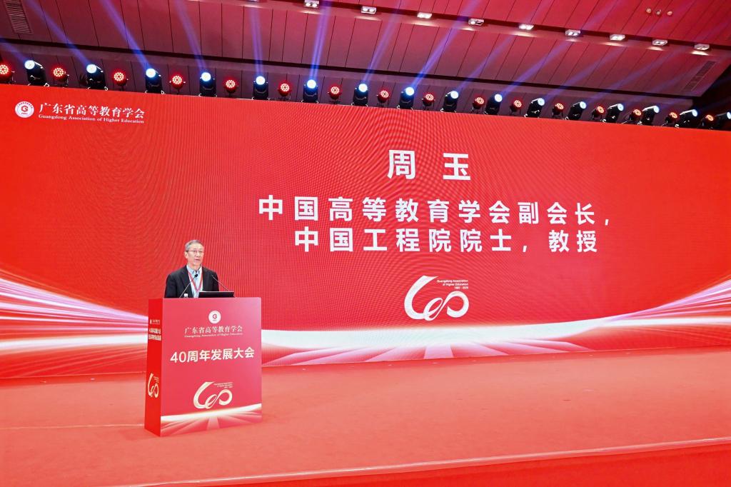 周玉向广东省高等教育学会成立40周年表示热烈祝贺,并充分肯定学会40年来取得的丰硕成果。他强调,高等教育作为科技第一生产力、人才第一资源、创新第一动力的重要结合点,必须发挥好“龙头”引领作用。希望学会深入学习习近平总书记关于教育的重要论述,紧密围绕国家重大战略需求,勇担时代使命,服务发展新格局;要立足广东改革开放前沿,深化理论研究,贡献高等教育“广东智慧”;要持续创新工作机制,加强自身建设,树立一流学会新标杆。