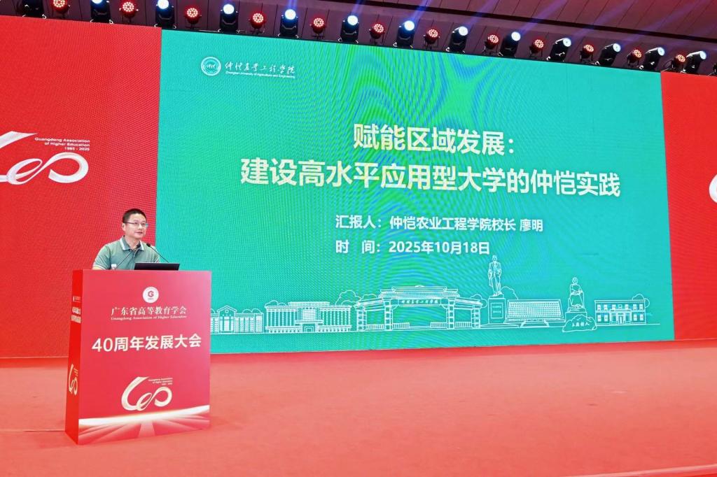 仲恺农业工程学院校长廖明以《赋能区域发展建设高水平应用型大学的仲恺实践》为题,分享了学校传承“扶助农工”到服务“三农”的初心,构建学科专业与区域产业对接及“政产学研用”协同育人机制的路径,总结了人才输出、科技赋能与品牌塑造的成效。
