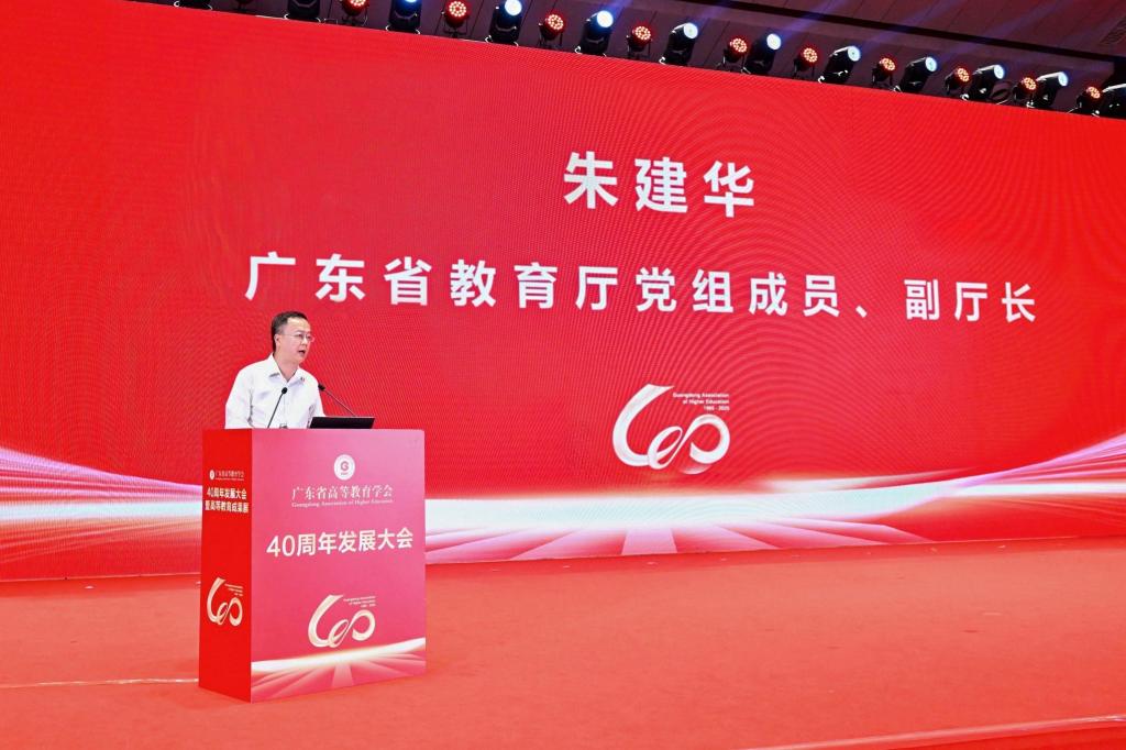 朱建华在讲话中充分肯定广东省高等教育学会为我省高等教育治理体系和治理能力现代化提供的有力支撑。他指出,广东当前正深入落实《教育强国建设规划纲要(2024-2035 年)》,朝着“打造具有全球影响力的高等教育集群”目标迈进。希望学会在服务教育决策上展现新作为,在引领高教创新上打造新风向,在促进协同发展上构建新格局。