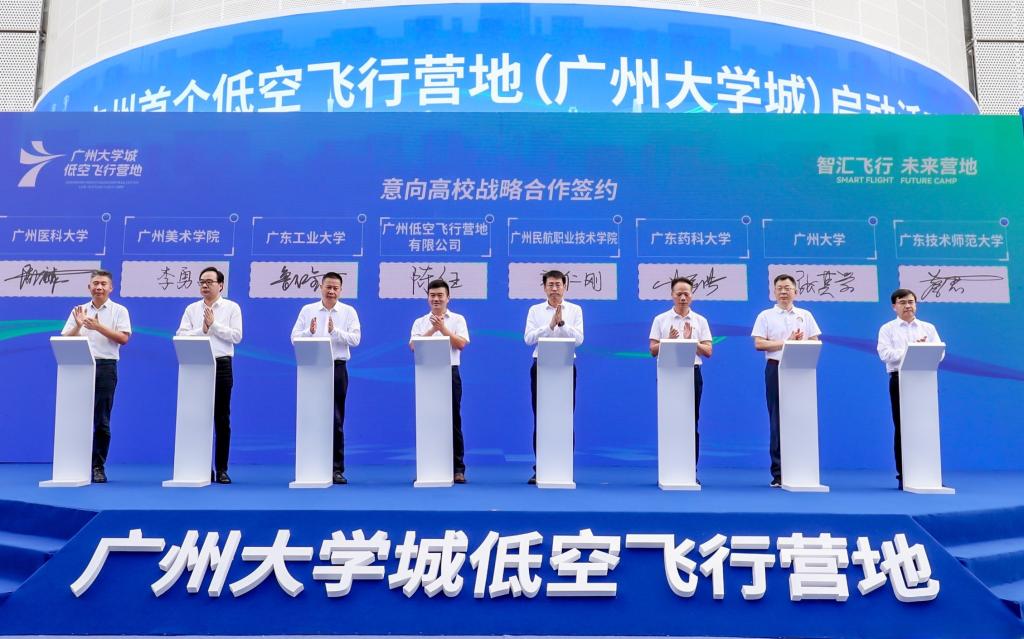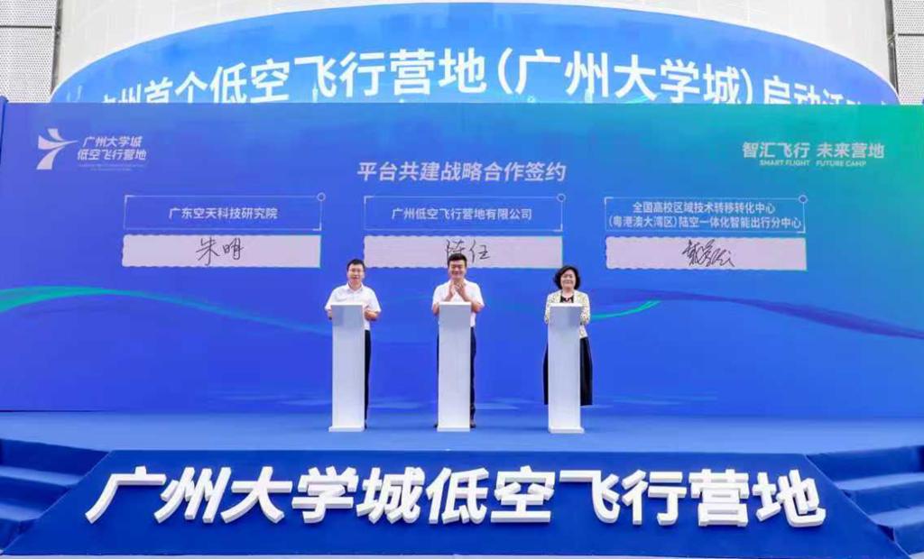 10月16日,为贯彻落实广州“12218”现代化产业体系工作部署,广州市发展和改革委员会与番禺区委、区政府在广州大学城联合举办广州首个低空飞行营地启动活动。学校校长戴青云,副校长蔡君应邀出席,政府部门、广州大学城12所高校及省内重点高校代表、小鹏汇天、亿航等龙头企业代表以及各界人士约200人参加了此次活动。