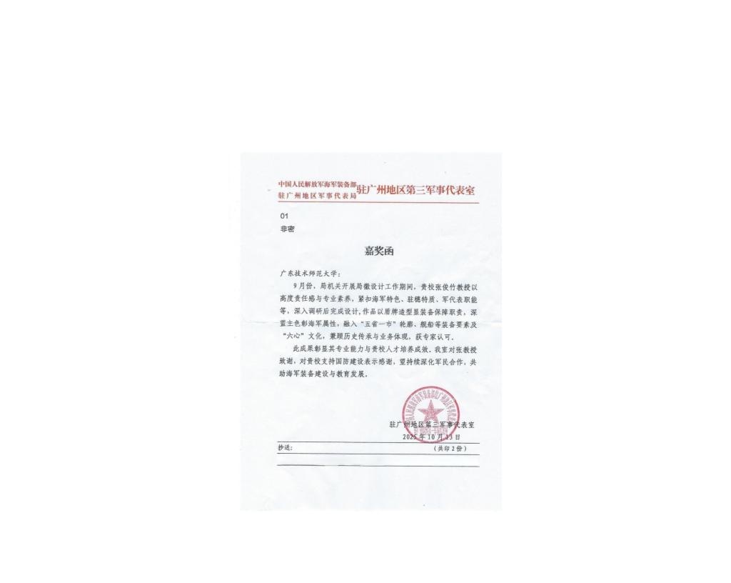 美术学院张俊竹教授为海军驻穗部队设计局徽获嘉奖