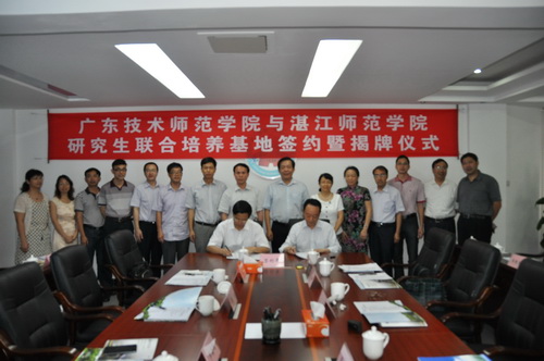 为深入贯彻落实国家、省教育规划纲要和省教育发展“十二五”规划,为广东教育“创强争先建高地”、率先基本实现教育现代化提供人才和智力支持,5月24日,我院与湛江师范学院研究生联合培养基地签约暨揭牌仪式在湛江师范学院举行。学院党委书记陈韶、院长王乐夫、副院长许玲,湛江师范学院党委书记梁英、院长罗海鸥、副院长邵乐喜,我院研究生处、教育学院,湛江师范学院科研处、教育学院等相关负责人参加了仪式。
