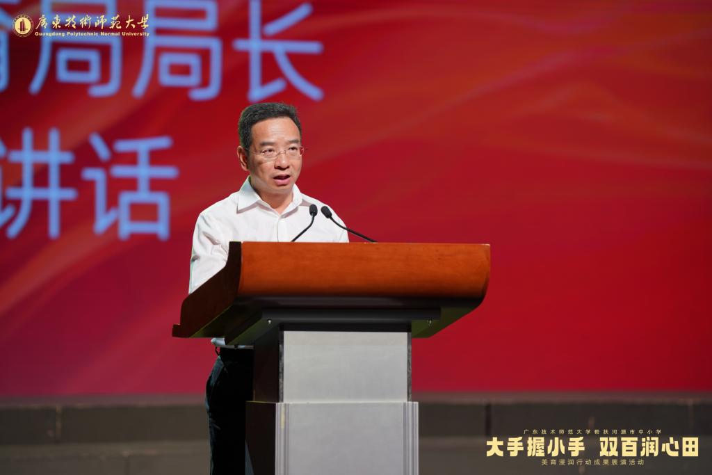 康天东在讲话中指出,本次成果展演是广东省“双百行动”在美育领域结出的硕果,也是高校支持地方基础教育高质量发展、服务“百千万工程”的典范。他高度评价广师大构建了高校与中小学协同发展的美育共同体,为促进城乡美育均衡发展提供了“河源经验”。