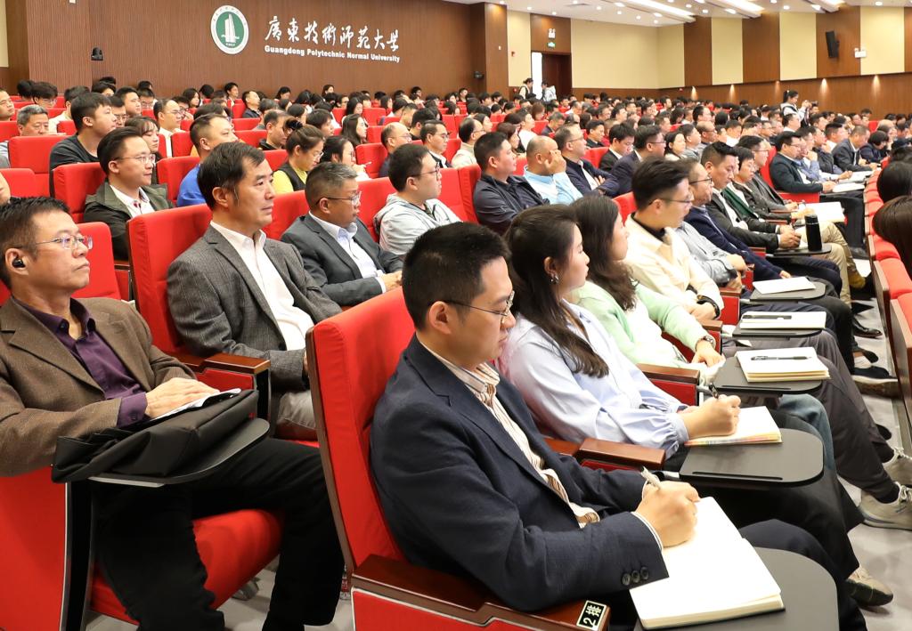 为深入学习党的二十届四中全会精神,推动学习宣传贯彻工作走深走实,11月6日,学校召开学习贯彻党的二十届四中全会精神报告会暨党委理论学习中心组学习扩大会。中国职业技术教育学会会长、教育部原副部长鲁昕受邀作题为《学习贯彻党的二十届四中全会精神 培养适应现代产业体系技术技能人才》的专题报告,学校党委书记王兵主持会议。中国职业技术教育学会副会长宋敏、花景新,中国科学院计算所、深圳职业技术大学技术与职业教育研究所、学会秘书处等相关人员,校领导班子成员、党委理论学习中心组成员、全体中层干部、全体党支部书记、各民主党派主委、统战团体负责人、学生代表等300余人聆听报告。