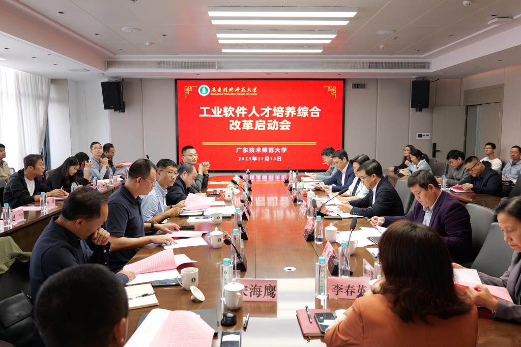 为贯彻落实广东省加快推进工业软件人才培养战略部署,破解人才培养瓶颈,构建产教融合新生态,11月13日,我校工业软件人才培养综合改革启动会在东校区801会议室隆重举行。工业软件领域专家、东莞理工学院计算机学院院长袁华强教授、10余家合作企业的代表、学校戴青云校长、蔡君副校长及教务处、财务处、机电学院、自动化学院、计算机科学学院、汽车与交通工程学院、电子与信息学院的领导老师60余人参加会议。