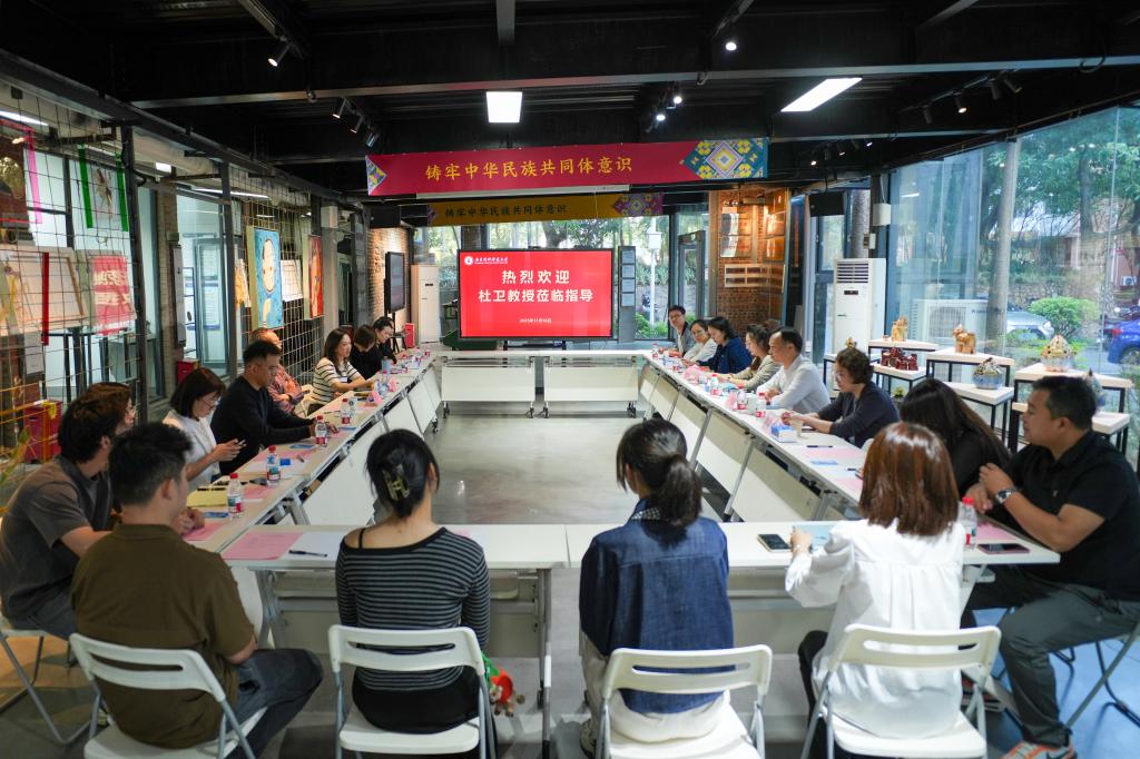 会前,学校党委书记王兵陪同杜卫教授参观我校非遗大师工坊美育实践平台,杜卫教授高度肯定平台将非遗技艺传承与美育实践深度融合的创新路径,称赞其既为学子搭建了沉浸式学习舞台,又为传统文化活化赋能提供了鲜活范例。