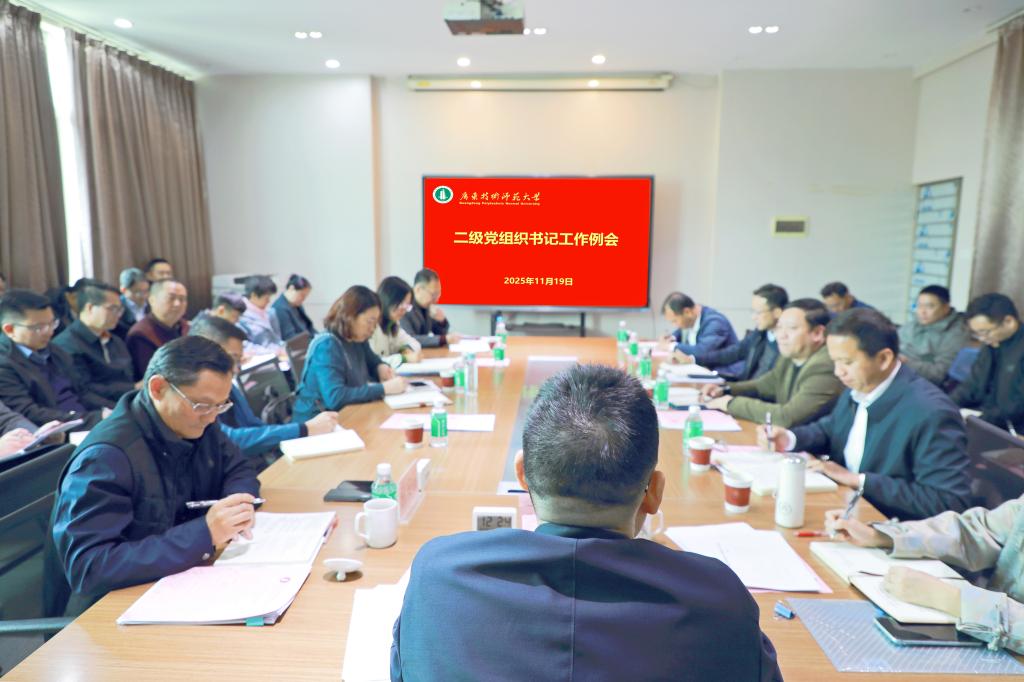 11月19日,学校在东校区第一教学楼1212会议室召开二级党组织书记工作例会。学校党委书记王兵,党委副书记杜安国出席会议,党委部门负责人及各二级党组织书记参加会议。会议由杜安国副书记主持。
