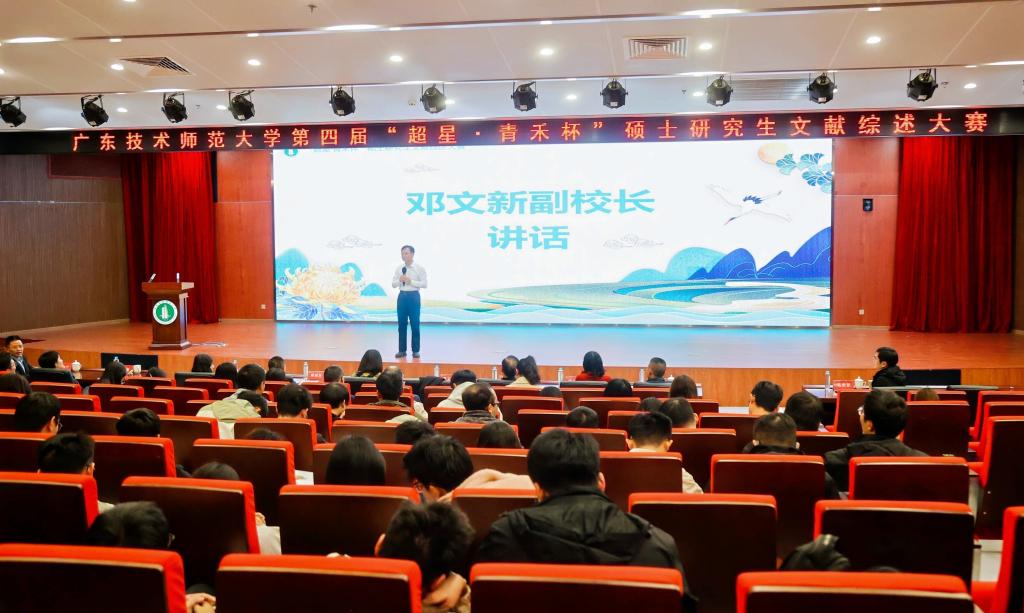 11月19日,第四届“超星·青禾杯”文献综述大赛决赛在白云校区图书馆113报告厅隆重举行。东校区一教209同步进行直播。学校副校长邓文新、超星集团副总经理陈世景出席本次活动,研究生院负责人、各学院师生代表共同观摩了比赛。广东外语外贸大学研究生院院长张欣、广东药科大学图书馆馆长苏政权、广东金融学院研究生院院长卿前龙、广东开放大学科研处处长陈东英、华南理工大学研究生院专业学位办主任熊玲、华南师范大学研究生院副院长谢金丽、广东工业大学研究生院副院长衷华担任评委。