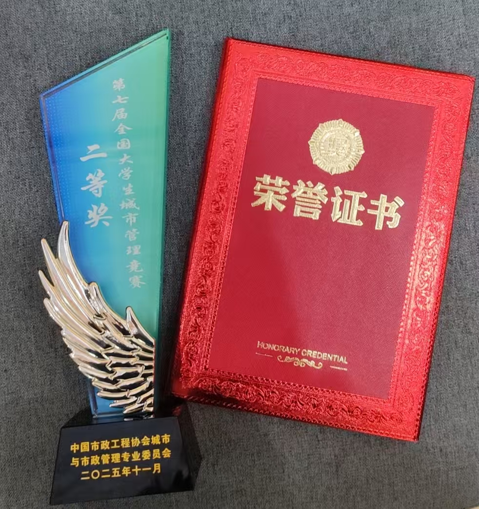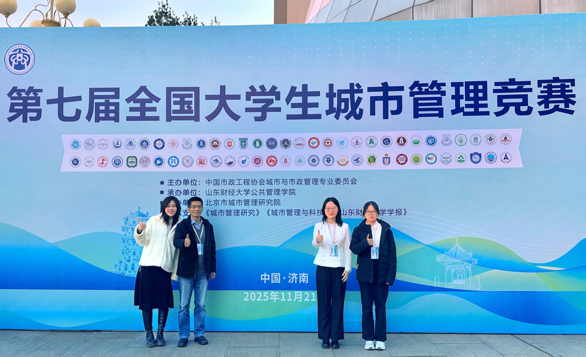 第七届全国大学生城市管理竞赛于2025年11月22日在山东济南圆满落幕,本届竞赛由中国市政工程协会城市与市政管理专业委员会主办,山东财经大学公共管理学院承办。在本次比赛中,管理学院代表队成功入围决赛环节,由毛林洁、柯雯婷、蔡汝欣等7名管理学院本科生组成的团队(指导老师:唐斌),与来自南开大学、天津大学、兰州大学、电子科技大学、中南财经政法大学等多所高校的优秀学子同场竞技。经过激烈角逐,管理学院代表队凭借出色的表现最终荣获二等奖。