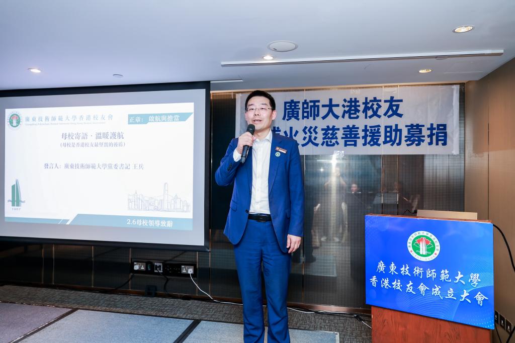 成立大会后,“支援大埔·共献爱心”慈善茶话会随后举行。师生校友现场传递爱心,气氛温暖而感人。王兵带领校领导及同行师生率先捐款,与会校友踊跃响应,现场筹得善款3万余元,将全部用于援助香港大埔火灾受灾家庭。