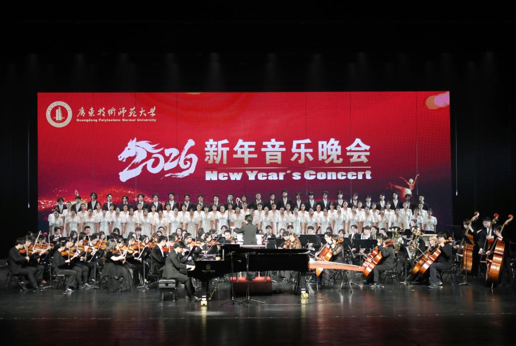 本次新年音乐晚会主题鲜明、格调高雅、形式丰富,充分彰显学校艺术教育的扎实功底与创新活力,生动体现学校以文化人、以美育人的教育理念,主动服务区域发展、勇担高校社会责任的使命担当。在2026年新年即将到来之际,这场高水准的音乐盛宴,为现场观众送上美好艺术享受与新春祝福,更奏响了学校与河源人民携手同心、共赴高质量发展新征程的华美乐章。