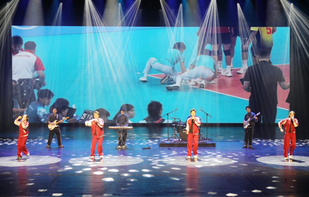 本场晚会既深耕经典、致敬经典,更立足创新,彰显鲜明的地域文化特色。竹笛二重奏《春到东江》旋律清新婉转、悠扬动人,勾勒出东江春日生机盎然的秀丽画卷;女高音独唱、男高音独唱曲目轮番上演,《瑶族舞曲》《我爱五指山,我爱万泉河》《长大后我就成了你》等经典作品,以优美歌声传递真挚情感与深厚教育情怀;男子群舞《奔腾》以充满力量的舞姿展现出昂扬向上的气势;诗朗诵《带着那束光远航》由学校退休老干部、教师、学工干部、校友及学生代表共同演绎,深情回望学校砥砺奋进的发展历程,满怀憧憬展望未来新征程,真挚情怀打动现场每一位观众。