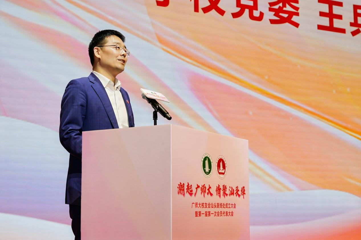 王兵发表讲话,以“有历史、有特色、有速度、有理想”凝练概括学校发展历程,并介绍了学校“申博冲百”战略目标和“12366”发展思路,与会校友深受鼓舞。他寄语全体校友,希望汕头校友联络处成为凝聚校友的情感纽带、服务母校的坚实桥梁,期待广大校友携手并肩,为母校发展与汕头城市建设添砖加瓦、贡献力量。