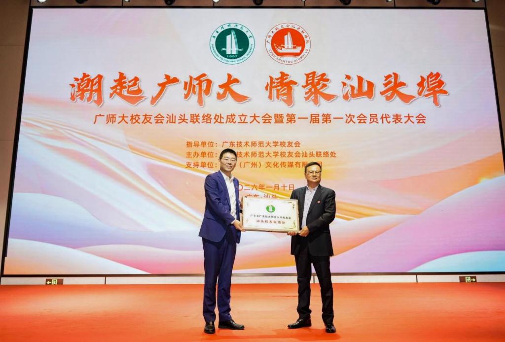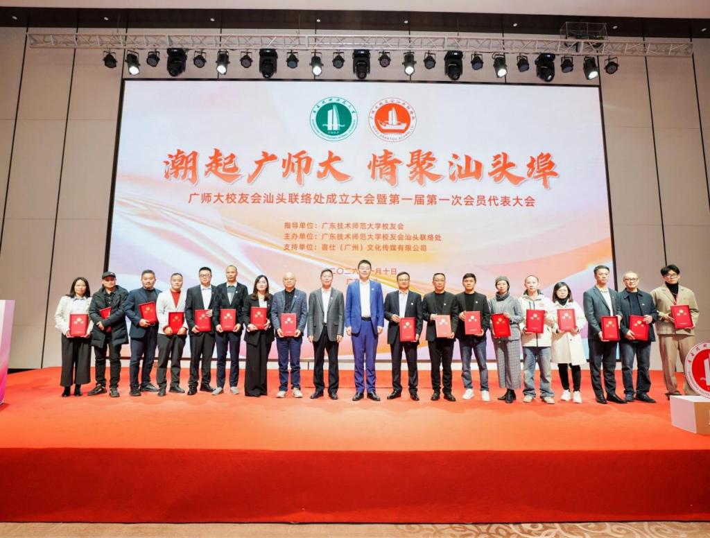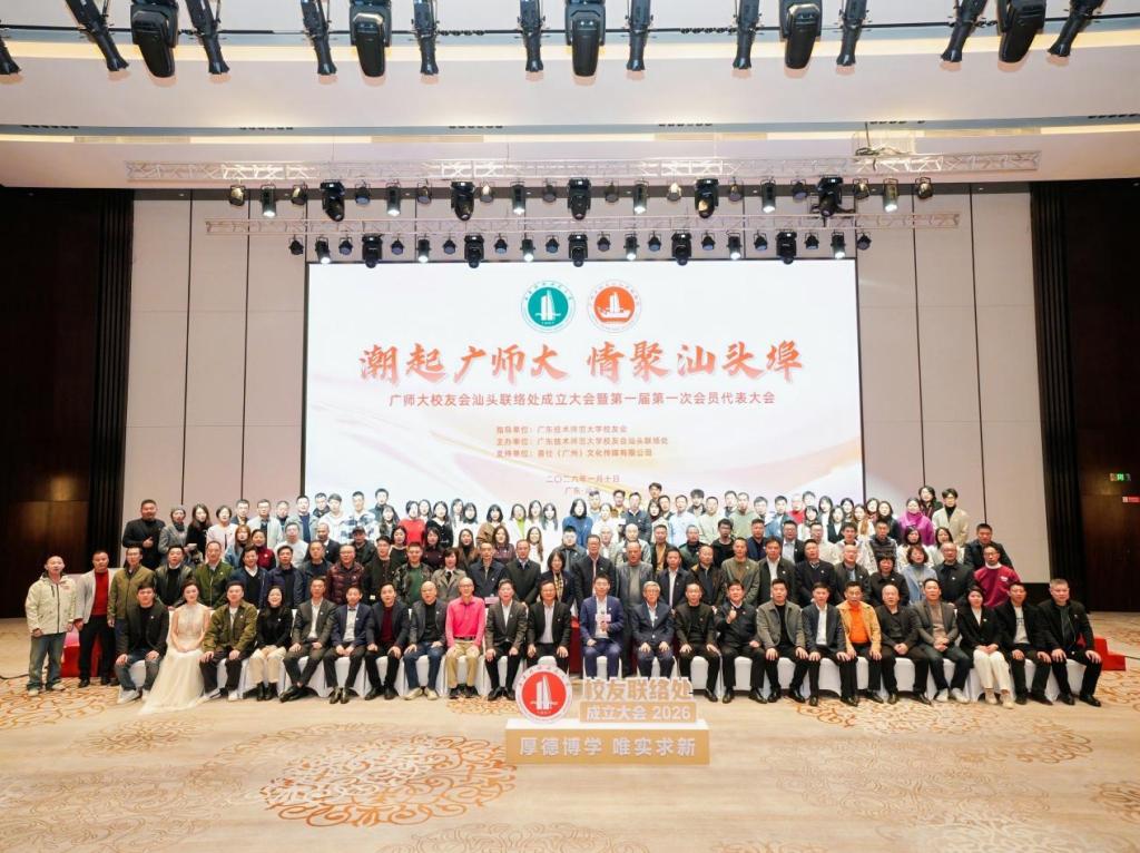 鼓点铿锵踏潮来,校友情深聚鮀城。2026年1月10日,广东技术师范大学校友会汕头校友联络处成立大会暨第一届理事会第一次会员代表大会在汕头白天鹅酒店隆重举行。学校党委书记王兵、副校长苏晖、原副校长林伦伦等领导和党办、校友办、机电学院、音乐学院相关部门负责人,与汕头各界校友代表欢聚一堂,共同见证重要时刻,倾心畅叙校缘情谊。