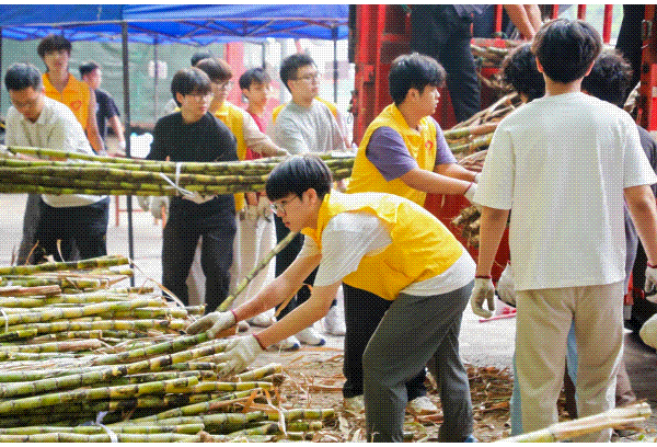 活动前期,在学校领导关心指导下,学校党委办公室、校长办公室、党委宣传部、学生处、后勤处、安保处、河源校区管委会、团委、工会等多部门提前谋划、周密部署,结合各校区实际情况合理设置派送点位,并设立服务点,明确分工、协同配合,确保活动有序高效推进。为方便师生食用,各服务点还专门安排工作人员和志愿者提供免费削皮服务,同时设置甘蔗糖水供应点,让师生们既能品尝新鲜果蔗,也能感受清甜饮品的温润。