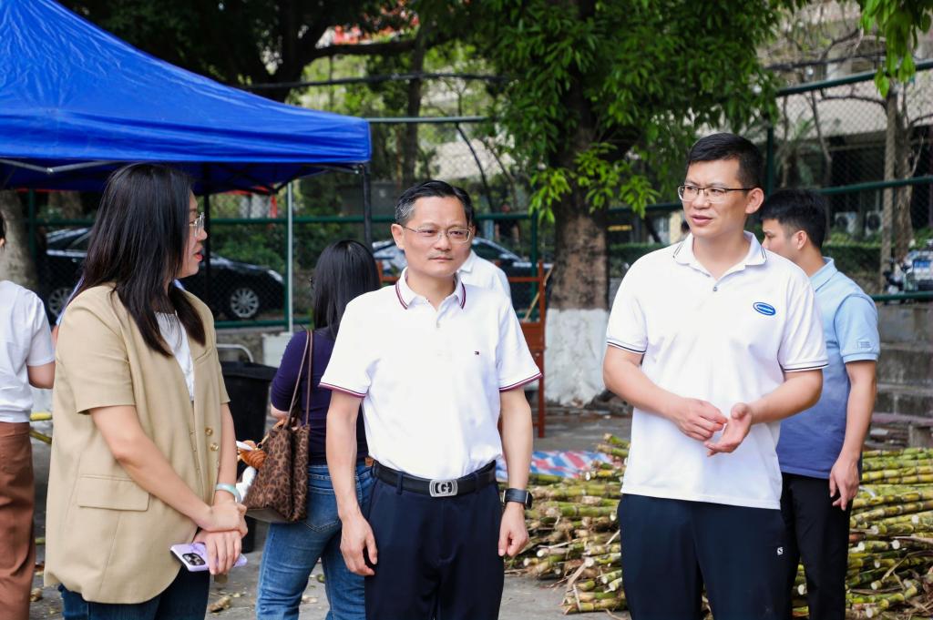 活动当天,学校党委书记王兵,副书记杜安国先后来到现场看望并慰问参加活动的学生、志愿者和工作人员。王兵表示,此次“百万英才汇南粤,千吨果蔗赠学子、医护”活动,不仅是一次暖心的助农惠民举措,更是校地同心、双向奔赴的生动体现,承载着地方对我校师生的厚爱,也凝聚起校地携手共进、共谋发展的深厚情谊。他寄语全体师生,要以此次活动为激励,凝心聚力、攻坚克难,全力以赴推进“申博冲百”各项工作,以实际行动书写学校高质量发展新篇章。