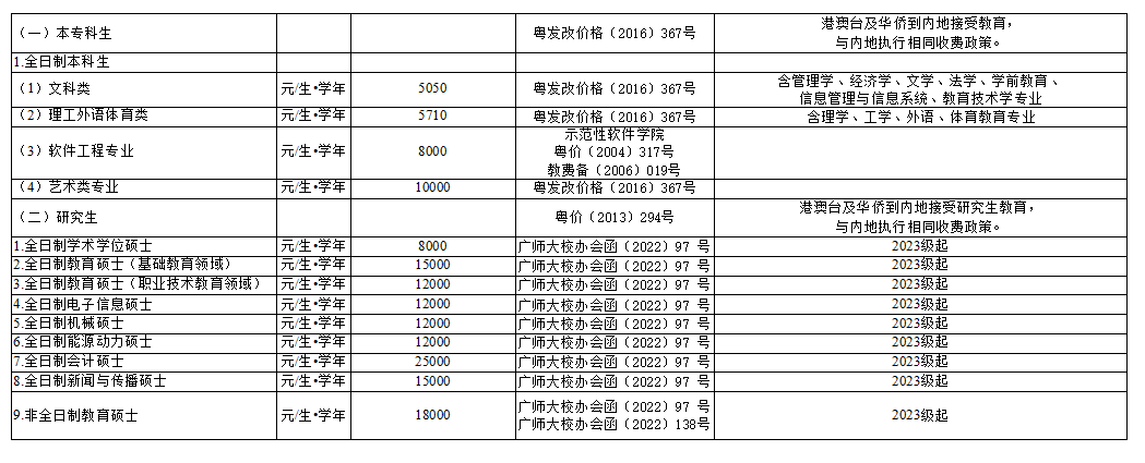 (一)学费标准