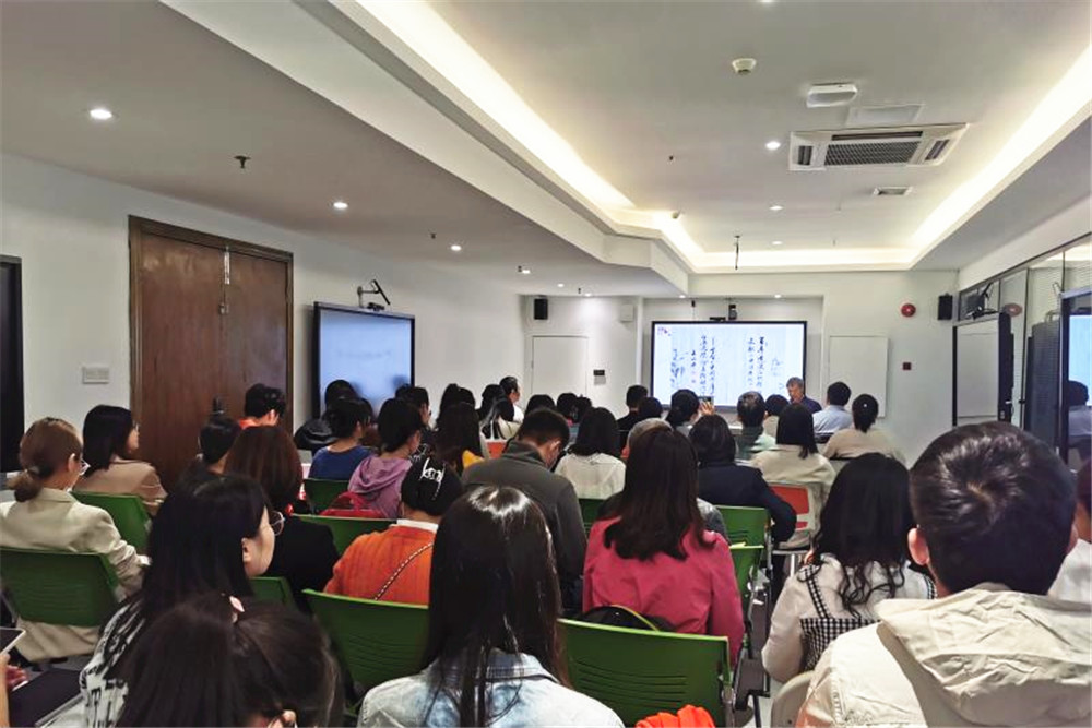 王永平研究员在讲述的过程中声情并茂,用自己的亲身经历结合中国共产党的发展历史,向大家讲述了中国共产党一百年峥嵘岁月里无数可歌可泣的故事。他指出,100年来中国发生沧桑巨变,换了人间。产生这一巨变的根本原因,在于有了中国共产党。他用幽默风趣的语言向大家精彩阐述了《中国共产党的历史使命与行动价值》的主要内容,并从全心全意为人民服务、为实现理想不懈奋斗、具有强大的领导力执政力、始终保持旺盛生机和活力、为人类和平与发展贡献力量这五个方面深度解读了中国共产党是什么样的政党。王永平研究员还通过书法作品来作课件的形式为大家呈现了不一样的《中国共产党的历史使命与行动价值》,让大家在收获知识与智慧的同时,也感受到中国书法的魅力。