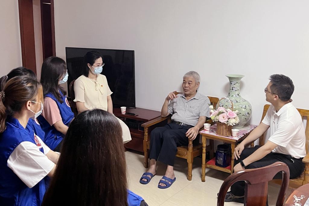为充分发挥“五老”亲历者、见证者、实践者的优势,持续开展以党史教育为重点的“四史”教育,引导广大青年学生赓续党的红色血脉,弘扬党的优良传统,5月9日,法学与知识产权学院党委副书记李雪斌、专职博士辅导员陈雪珍带领学生党员代表拜访了我校关工委吴炳根老师。