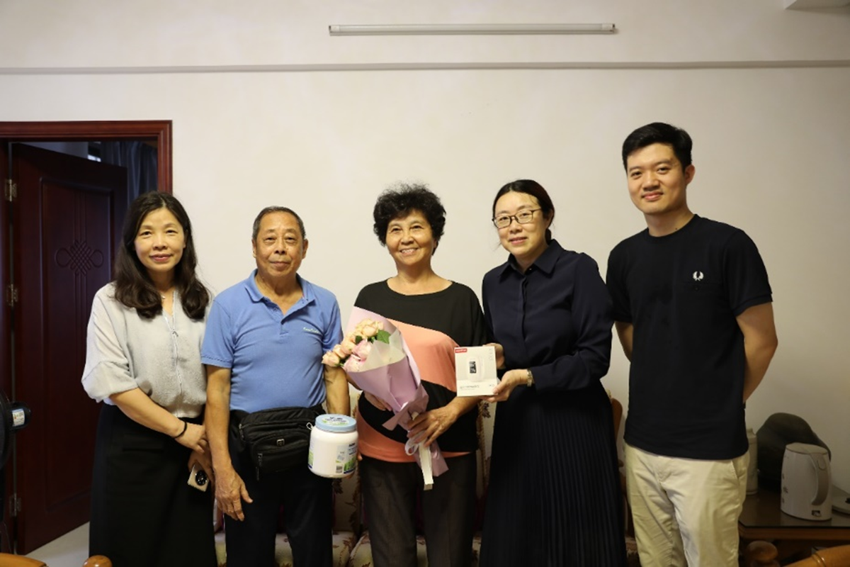 为贯彻第十一次全国归侨侨眷代表大会精神,在重阳节来临之际,为传承和弘扬中华民族“尊老、敬老、爱老”的传统美德,扎实做好侨服务工作,学校侨联主席许竹君,副主席谢蔡义、赵珲,离退休工作处党委书记王华秀,离退休工作处副处长杨志强等有关同志于近日带队走访慰问学校部分老归侨侨眷。