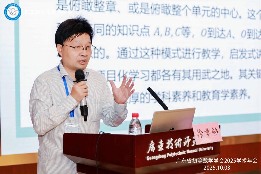华中师范大学博士生导师徐章韬教授在大会报告中借鉴张景中院士的教育数学思想,倡导通过“中心辐射式知识结构”建立中国自主的数学教育学话语体系。