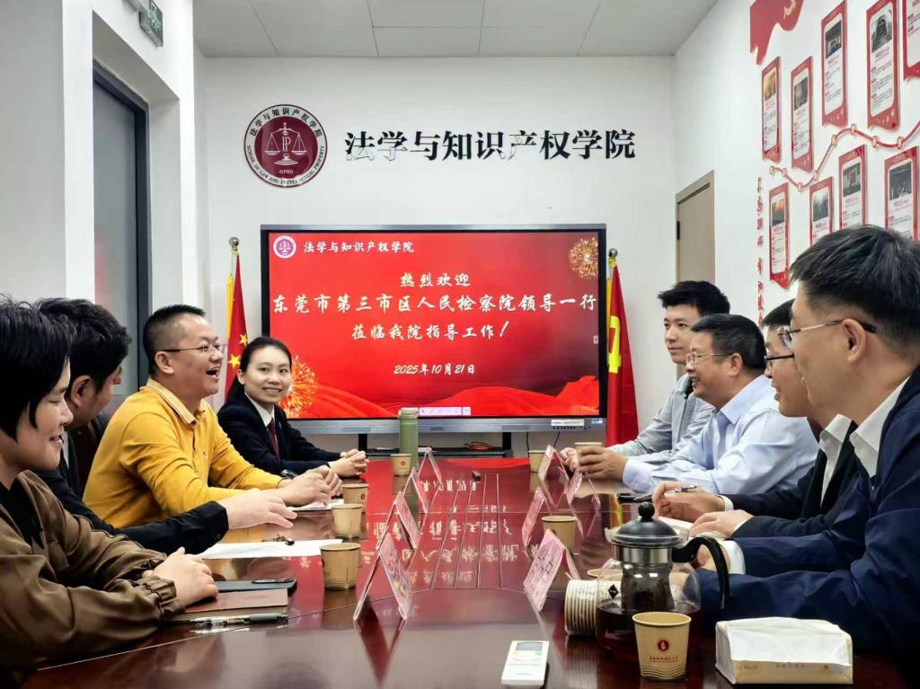 10月21日,东莞市第三市区人民检察院党组成员、政治部主任张向平一行到我校白云校区调研交流。法学与知识产权学院院长黄俊辉、副院长肖扬宇、立法研究中心主任柳建启、实训中心主任王沛锐参加座谈。