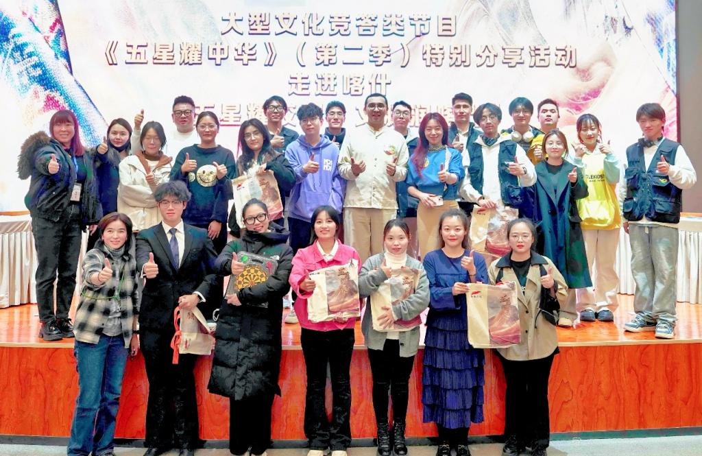 《五星耀中华》节目是新疆维吾尔自治区党委宣传部、自治区教育厅、新疆广播电视台在全疆范围内广泛开展的,以推广普及国家通用语言文字和传承弘扬中华优秀传统文化为主要内容的国字号大型文化竞答类节目。2024年播出的第一季广受观众欢迎,累计收视达11.2亿,现已启动第二季。此次《五星耀中华》(第二季)特别分享活动集知识性、艺术性、趣味性于一体,紧张、活泼,充满人文关怀,不仅传承和弘扬了中华优秀传统文化,而且提高了学生对国家通用语言文字的认识和重视程度,促进了国家通用语言文字的推广普及。