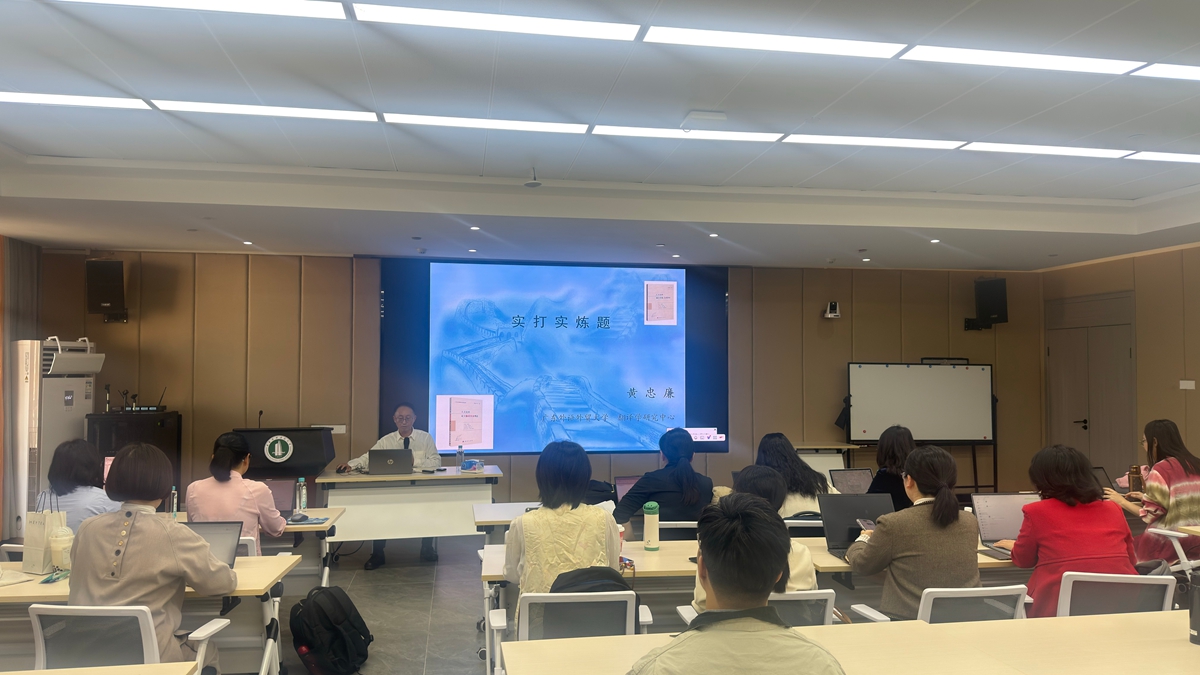 黄忠廉教授首先为与会教师作了题为《实打实炼题》的学术讲座,围绕“学科内功”和“时需外功”两方面,讲解选题如何从原点、求新、拓展、聚焦、掘深、灵动到滴水映日、丰盈精准、锤炼精练、泥炼成瓷,深入阐述了国家社科项目的选题凝练策略与方法。黄忠廉教授还结合其撰写的《人文社科项目申报300问》等五本著作,对国家社科项目申报书的优化策略进行了介绍。