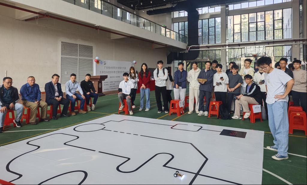 为深化产教融合、激发学子科创活力,12 月 4 日下午,由共青团广东技术师范大学委员会主办、自动化学院承办、广州粤嵌通信科技股份有限公司协办的智控机甲对抗赛决赛在白云校区学生活动中心举办。自动化学院党委书记杨延军、副书记蒋鹏,校团委专职团干钟裕,粤嵌公司技术总监冯宝祥出席活动。