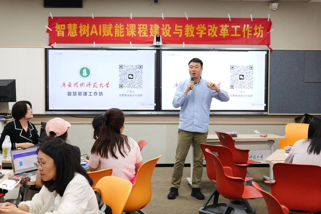 培训特邀教育行业专家伍娟、智慧树高级金课咨询师付尧主讲。伍娟以“AI赋能新形态教学”为题,剖析AI实现“师-生-机”三元互动,带领教师完成AI课代表打磨、教案生成等四大实操环节,助力掌握五大教学模块应用。付尧围绕智慧慕课建设,讲解核心要素,指导教师分组完成各类图谱构建及知识点精装修,产出特色智能体与教学指令。