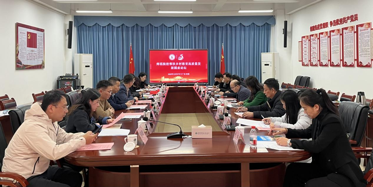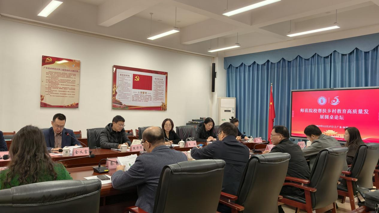 为推进粤东西北乡村教育高质量发展,12月27日,师范院校帮扶乡村教育高质量发展圆桌论坛在我校河源校区厚德楼418会议室举行。本次论坛由我校与肇庆学院联合主持,汇聚了来自东北师范大学、南京大学等知名高校的专家学者,以及我校基础教育学院的负责人和骨干教师,共同就新时代乡村教育面临的机遇与挑战,以及师范院校如何更有效地赋能乡村教育的深度发展,展开了一场富有成效的交流与研讨,为粤东西北地区的乡村教育描绘出高质量发展的新蓝图。