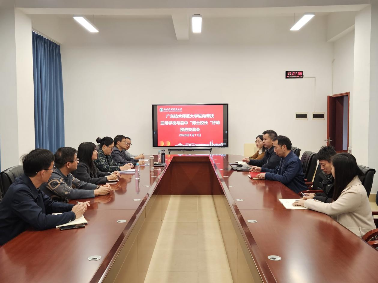 1月11日,广东技术师范大学纵向帮扶“三所学校”与县中“博士校长”行动推进交流会在河源校区顺利召开。会议旨在推进和完善乡村学校“博士校长”行动的有关措施与实施办法,进一步推动优质教育资源共享,助力基础教育高质量发展。会议由纵向帮扶领导小组秘书长熊华军主持,学校相关部门负责人、帮扶学校代表及“博士校长”等参加了会议。