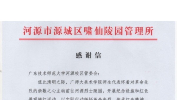 河源市源城区啸仙陵园管理所向我校发来感谢信