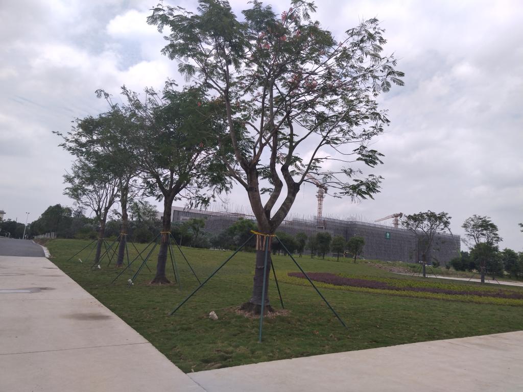 在图书馆南广场的校友林捐赠植树现场,尽管近日因大雨导致草地泥泞难行,但丝毫不影响大家的植树热情,校领导、老领导和校友们踩着满脚的淤泥,一起挥着铲子,把一抔抔蕴含着广大校友、离退休老领导老教师、在校师生员工以及社会各界对学校发展期望的泥土培植在已初绽“红云”花朵及充满生命力和希望的凤凰木上。植树环节后,校友代表还分别为捐赠的树木培土、悬挂纪念铭牌并合影留念。在近期连绵的“龙舟水”的滋养下,整个校友广场新建成的校友林草地湿润、花树清香。