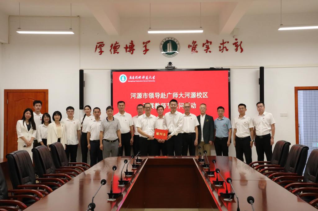 9月10日下午,河源市委副书记吴青川率队到我校河源校区开展教师节慰问活动,市委副秘书长殷乘胜、市教育局副局长张金坤参加活动。学校党委书记王兵,党委常委、副校长苏晖,河源校区相关部门负责人以及部分教师代表参加了活动。