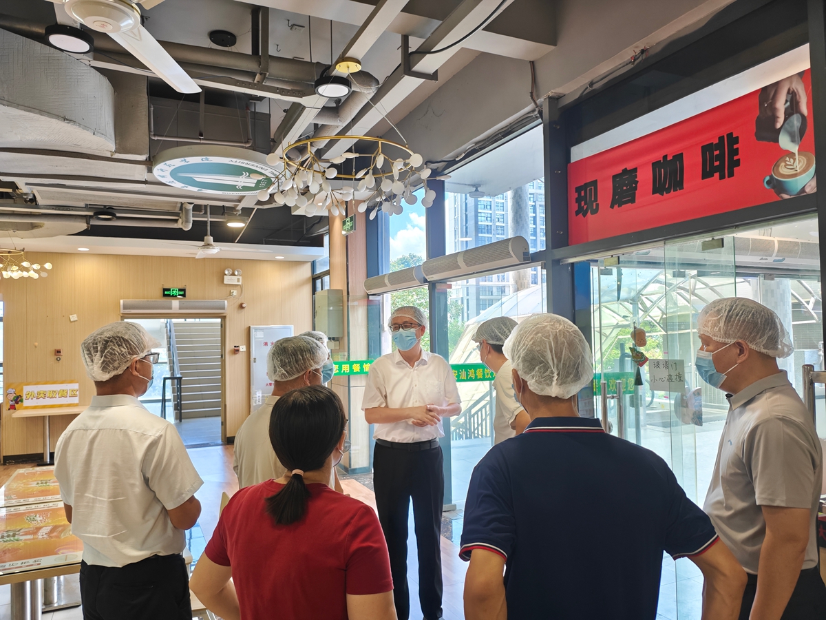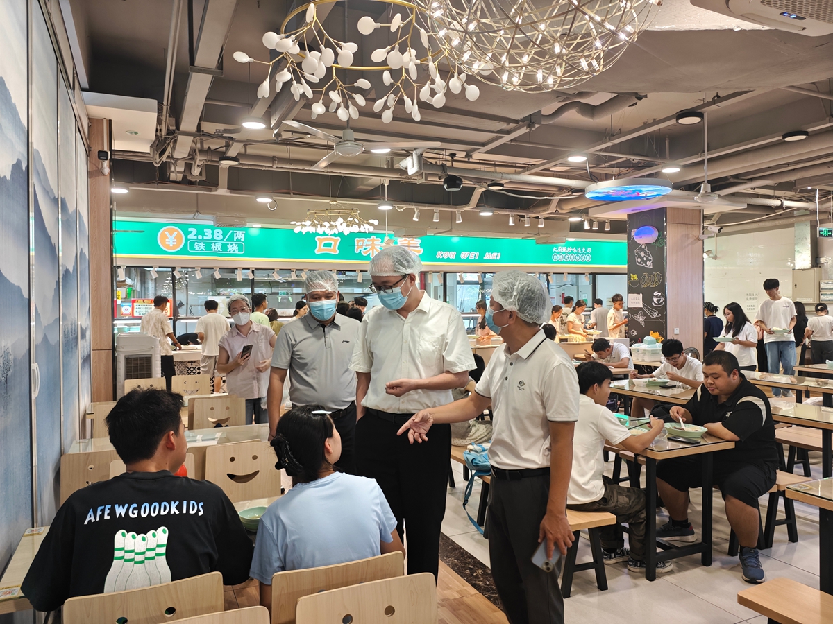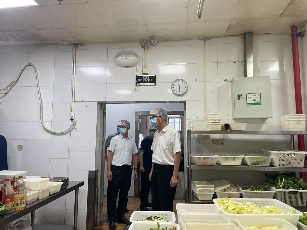 孙燕青一行深入白云校区各食堂后厨操作间,认真细致检查了新学期食堂食品安全工作落实情况,重点查看了后厨环境卫生、食品安全信息公示、从业人员健康管理、食材采购索票索证索源与进货查验、仓储食材管理、食品加工制作及留样、餐厨具清洗消毒、餐厨垃圾规范处置、“三防”设施设备落实以及“明厨亮灶”运行等方面工作,并提出针对性指导意见。