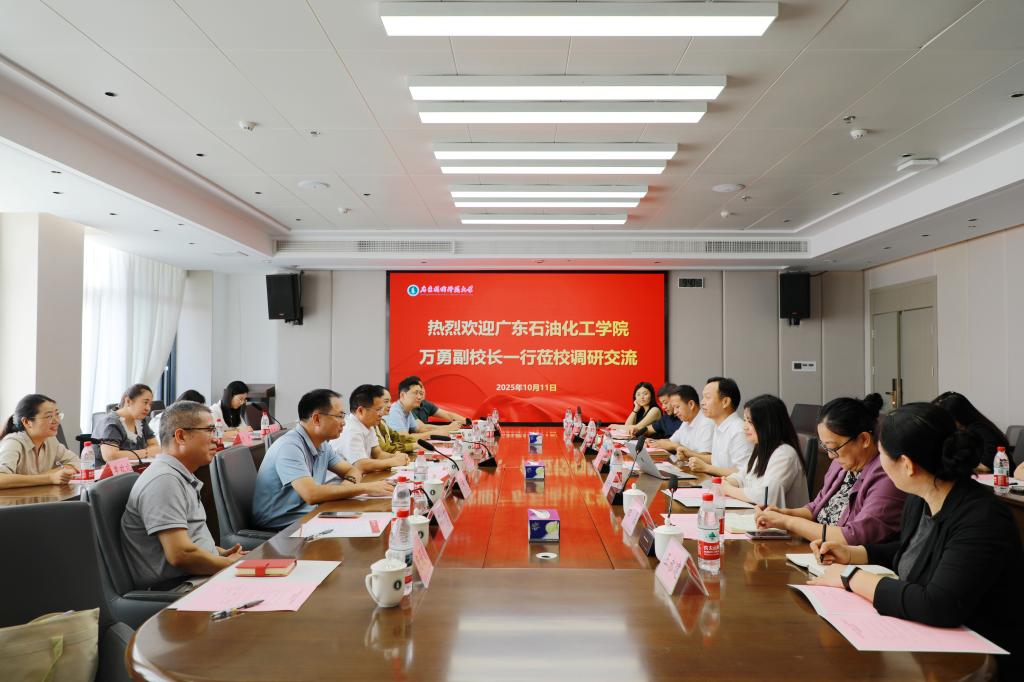 10月11日上午,广东石油化工学院副校长万勇一行前来我校开展调研交流。交流座谈会在东校区工业中心801会议室召开,我校副校长邓文新主持会议并致欢迎词。双方围绕学校发展历程、办学特色、师范类专业认证、人才培养机制等方面进行了深入探讨,共谋高质量发展新路径。
