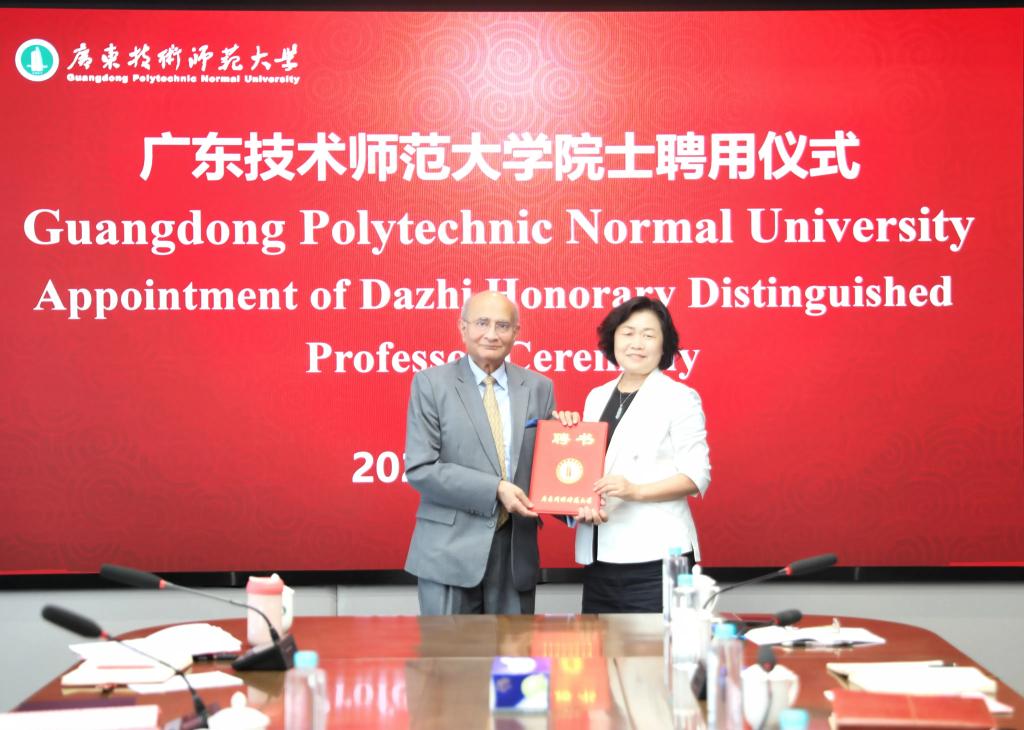 塔立克·杜拉尼院士在讲话中对学校的信任表示感谢,他系统介绍了自身学术经历与科研成就,分享了在跨学科研究领域的前沿见解。他表示,广东技术师范大学是一所特色鲜明、发展定位极具前瞻性的高校,期待以此次聘任为契机,将国际前沿技术理念与学校学科优势深度融合,在人才联合培养、科研协同攻关等方面开展实质性合作,为粤港澳大湾区技术技能人才培养提供智力支撑。