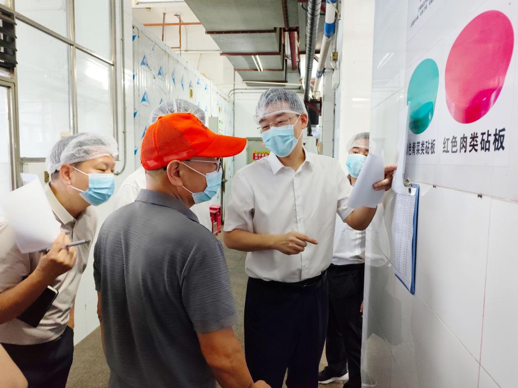 王兵一行先后来到白云校区第一食堂、第二食堂、第三食堂,深入各食堂后厨操作间、冷库、洗消间、配餐区等重点场所,实地查看环境卫生,认真细致检查了从业人员健康证明、食材采购台账、食品留样记录、“三防”设备配备等情况,并针对加工制作流程、餐具清洗消毒、消防设施日常管理提出指导意见。