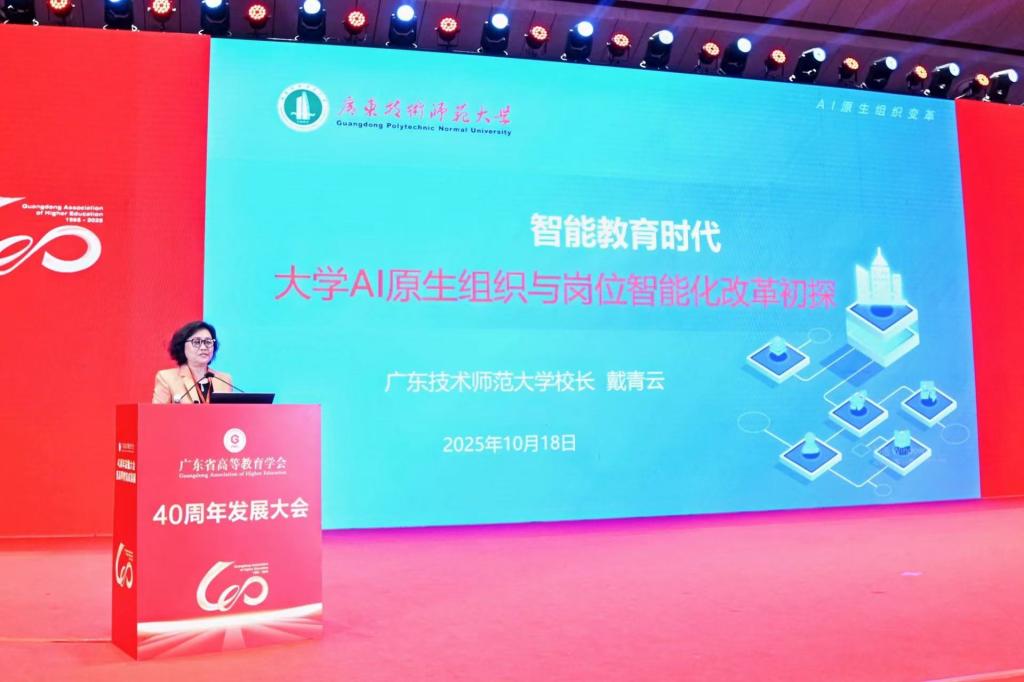 我校校长戴青云以《智能教育时代大学AI原生组织与岗位智能化改革初探》为题作专题报告。她指出,高校应推动构建“AI原生组织”,打造人机协同、持续进化的新型高校治理体系。她介绍了广师大在探索AI赋能岗位、构建智能协同机制方面的实践路径,并强调,AI原生组织建设的核心在于组织进化与能力跃升,让师生从事务性工作中解放出来,聚焦于更具创造性的教学、科研与社会服务。