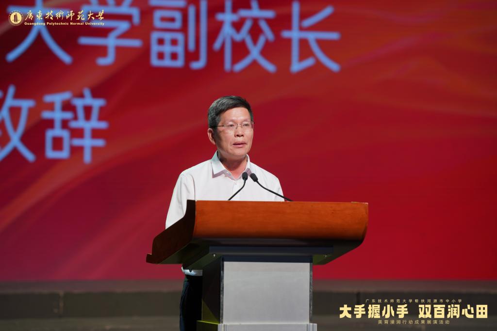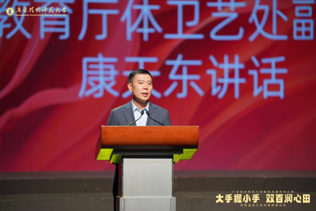 康天东在讲话中指出,本次成果展演是广东省“双百行动”在美育领域结出的硕果,也是高校支持地方基础教育高质量发展、服务“百千万工程”的典范。他高度评价广师大构建了高校与中小学协同发展的美育共同体,为促进城乡美育均衡发展提供了“河源经验”。