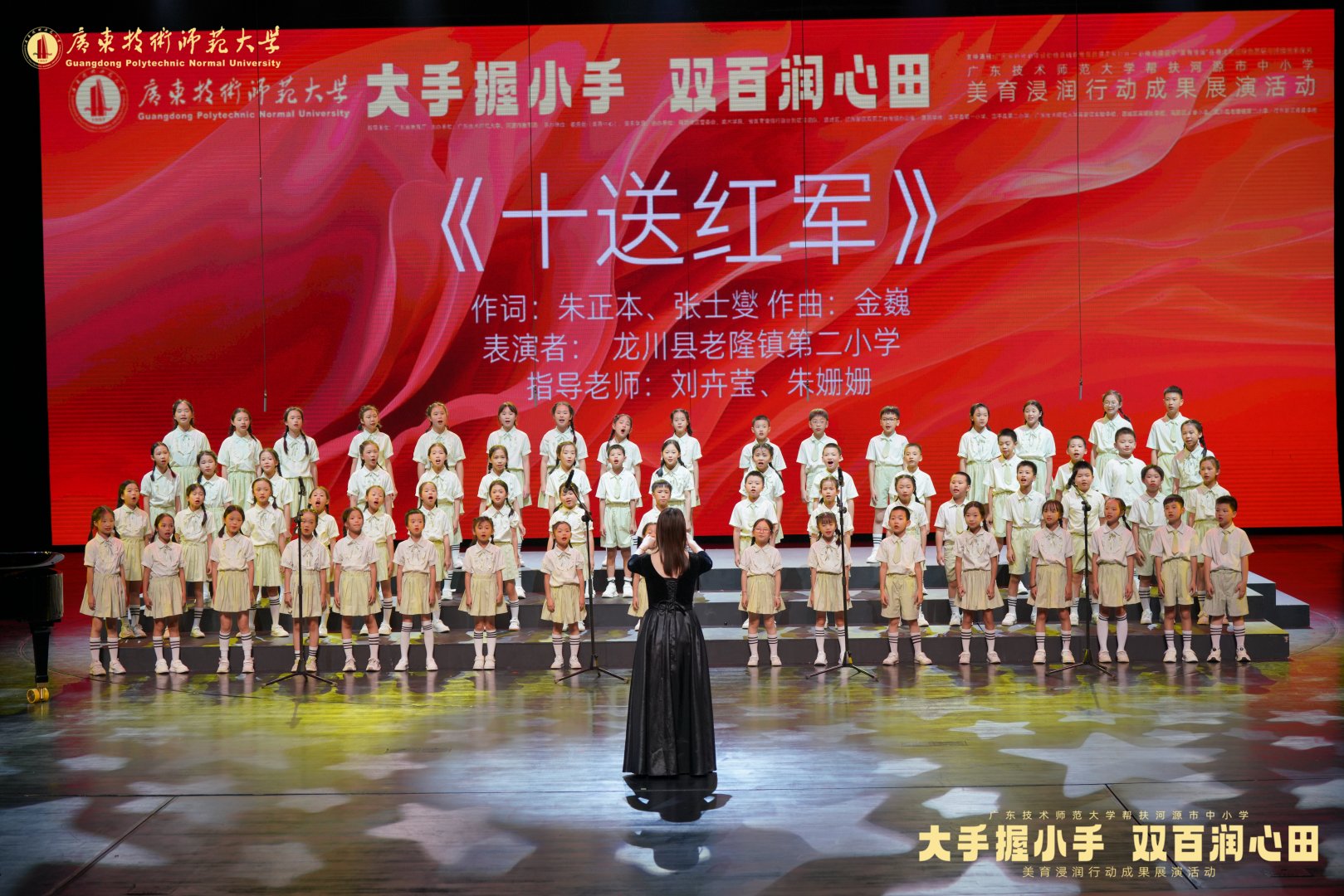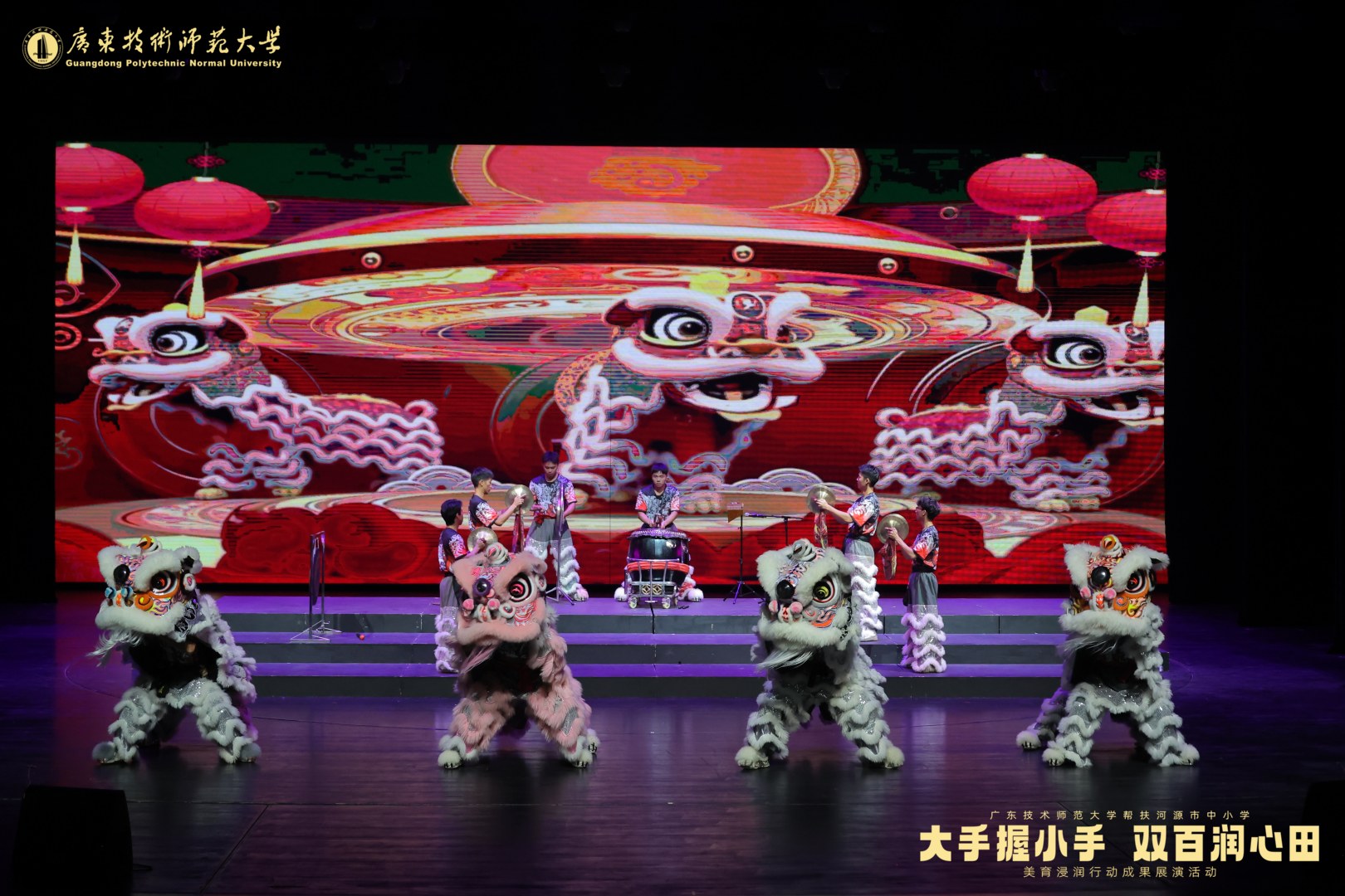 为深入贯彻教育部《全面实施学校美育浸润行动的通知》精神,积极响应广东省“双百行动”部署,集中展示校地协同推进美育工作的阶段性成果,10月31日晚,“大手握小手,双百润心田”广东技术师范大学帮扶河源市中小学美育浸润行动成果展演活动在河源桃花水母大剧院圆满举行。