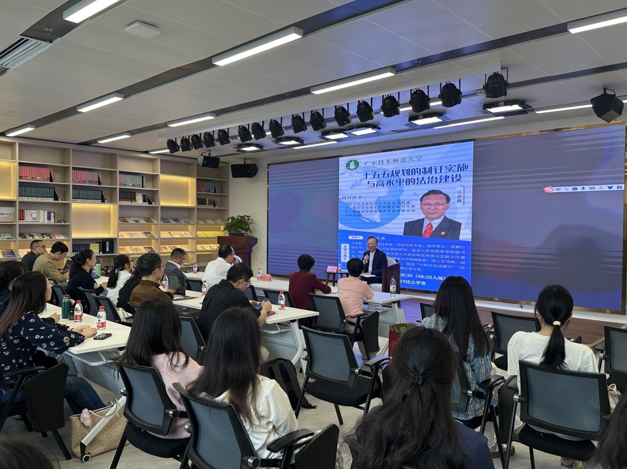 11月7日上午,著名法学家、最高人民法院原副院长江必新教授应邀在白云校区图书馆719达之学堂作题为《“十五五”规划的制定实施与高水平的法治建设》的学术报告。学校副校长孙燕青、法学与知识产权学院班子成员以及学院师生代表参加讲座。