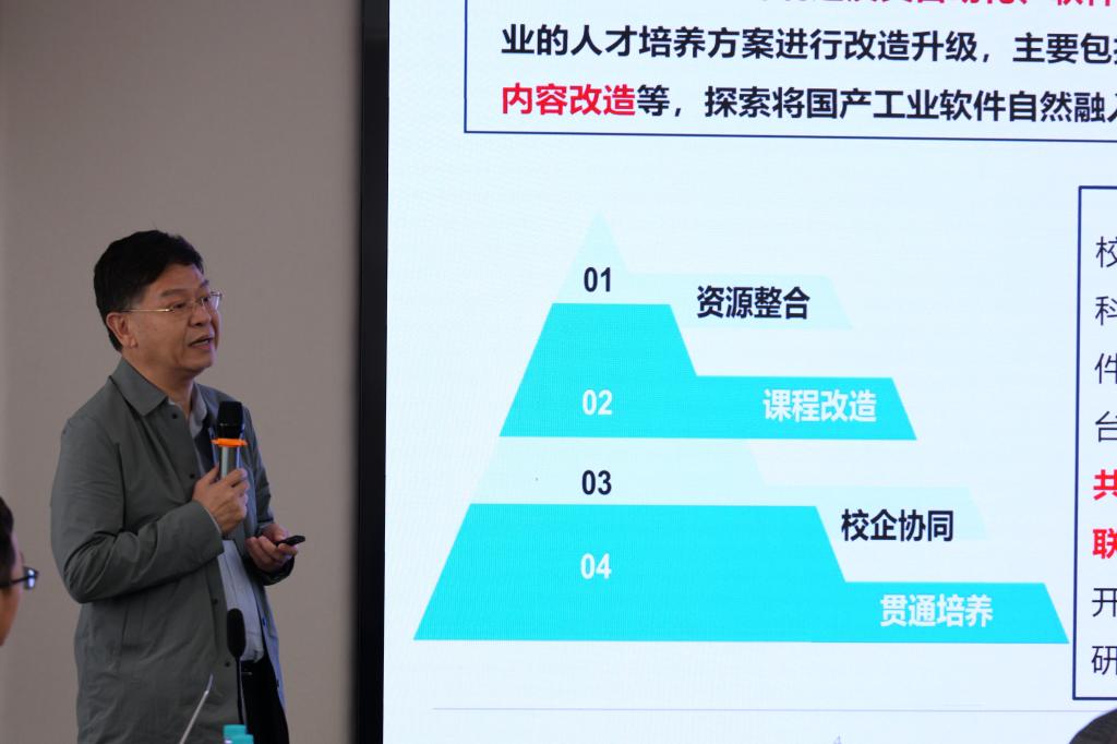 杨勇从项目基础、改革目标、具体举措及保障机制四方面汇报了工业软件人才培养综合改革建设方案,详细阐述了多学科联合、产教深度融合的工业软件人才培养综合改革思路。