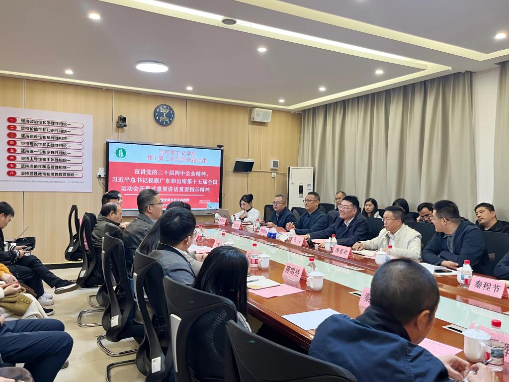 为学习贯彻习近平总书记视察广东和出席第十五届全国运动会开幕式重要讲话重要指示精神,11月20日,学校党委书记王兵在东校区一教1311室为马克思主义学院教工第二党支部全体党员讲授专题党课。马克思主义学院领导班子成员、教工第二党支部全体党员参加学习。