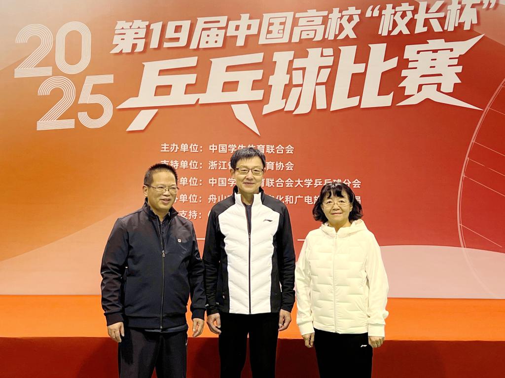 11月22日至23日,由中国学生体育联合会主办,舟山市普陀区文化和广电旅游体育局承办的2025年第19届中国高校“校长杯”乒乓球比赛在浙江舟山普陀举行。我校副校长许玲,原党委副书记、纪委书记贺勇作为广东队主力队员参加了比赛。经过紧张激烈的角逐,广东队获得了混合团体项目第四名,贺勇荣获单打第二名。