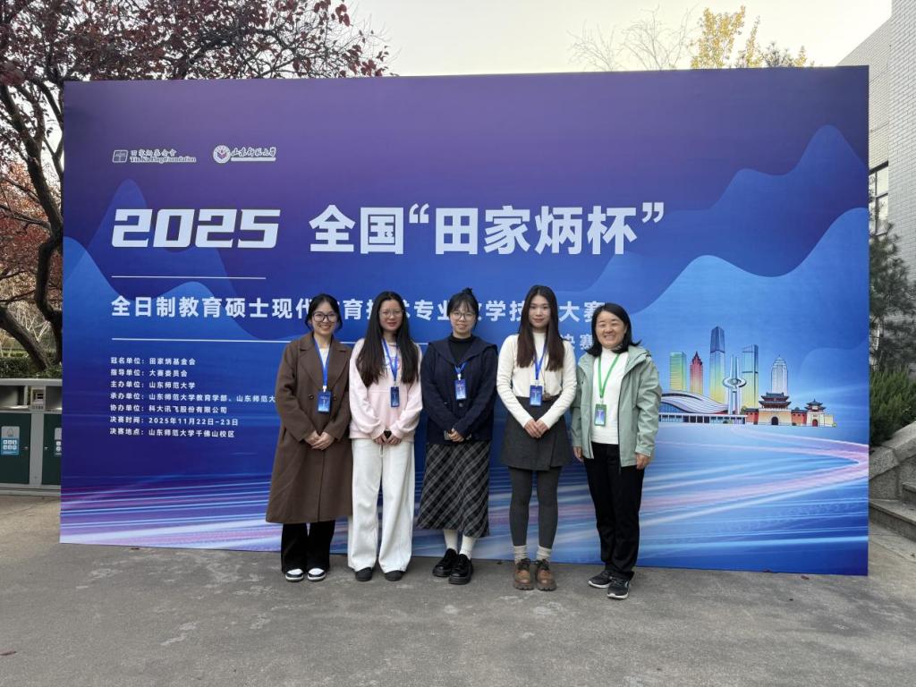 11月21日至23日,全国“田家炳杯”全日制教育硕士专业学位研究生(现代教育技术专业)教学技能大赛决赛在山东师范大学举行。教育科学学院赵玉老师作为带队老师,与4名现代教育技术专业研究生一同参赛。经过紧张激烈的现场比赛,最终荣获三等奖3项(冯靖、罗歆媛、潘若涵),优秀教学设计奖1项(庄怡欣)。