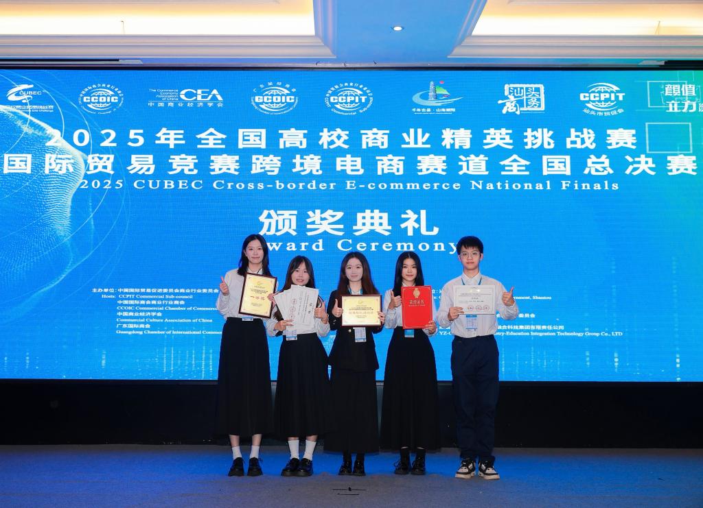11月23日,2025年全国高校商业精英挑战赛国际贸易竞赛跨境电商赛道全国总决赛与全国精英赛顺利落下帷幕。由财经学院郑旭芸老师指导的智贸先锋队(队员:王彩琳、李逸彤、林海纳、黎健锋、莫雅雯)与财贸电商赢麻队(队员:蔡欣颖、张凌渊、刘美玲、彭文琳、杨雪)荣获全国一等奖与精英奖,由蔡文英老师指导的差评终结队(队员:陈沛淑、陈芝琳、陈佳钰、黄俊怡)荣获全国二等奖,我校获评“最佳院校组织奖”。
