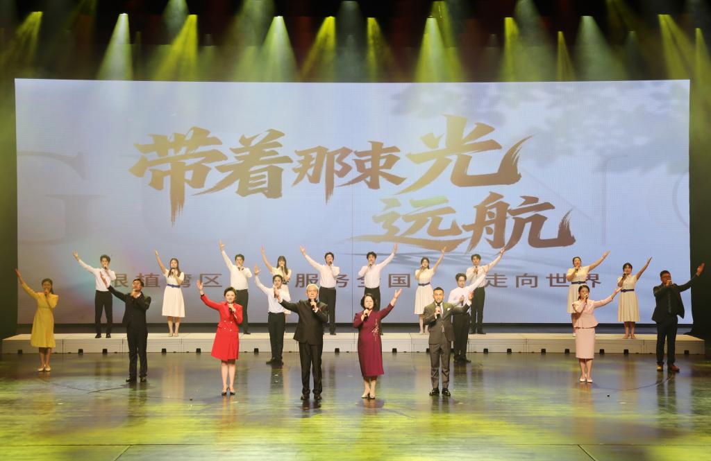 本场晚会既深耕经典、致敬经典,更立足创新,彰显鲜明的地域文化特色。竹笛二重奏《春到东江》旋律清新婉转、悠扬动人,勾勒出东江春日生机盎然的秀丽画卷;女高音独唱、男高音独唱曲目轮番上演,《瑶族舞曲》《我爱五指山,我爱万泉河》《长大后我就成了你》等经典作品,以优美歌声传递真挚情感与深厚教育情怀;男子群舞《奔腾》以充满力量的舞姿展现出昂扬向上的气势;诗朗诵《带着那束光远航》由学校退休老干部、教师、学工干部、校友及学生代表共同演绎,深情回望学校砥砺奋进的发展历程,满怀憧憬展望未来新征程,真挚情怀打动现场每一位观众。