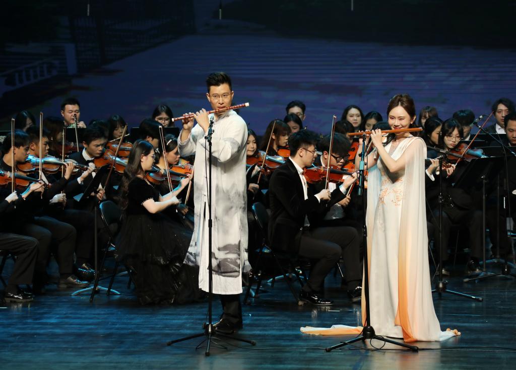 随后,音乐学院交响乐团与灯塔合唱团联袂登台,奏响经典管弦乐作品《红旗颂》。激昂雄壮的旋律与饱含深情的合唱交融共鸣,深情抒发对祖国的无限热爱与美好祝福。交响合唱《黄河》接续奏响,磅礴恢宏的乐章再现中华民族不屈不挠、奋勇拼搏的伟大精神,钢琴演奏与乐团、合唱团默契配合,精彩演绎赢得全场观众经久不息的掌声。《钢铁洪流进行曲》铿锵有力、气势昂扬,奏响新时代砥砺奋进的时代强音,让现场观众心潮澎湃。